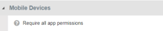 Harden the default requirement: Selecting the Require all app permissions enforces the users to grant all permissions. This also supports the total functionality of the mobile app. |