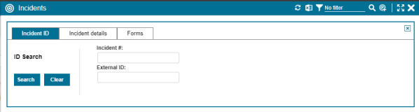The Incident ID tab opens as the default tab for a new search is initiated in the Incident panel.
