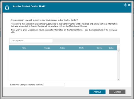 With the new Archive Control Center feature you can archive and lock a Control Center. All associated data is retained and remains accessible to the Dispatchers you specify for future access.