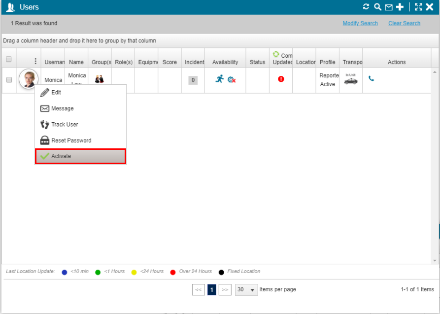 - Right-click on the user, and select Activate.