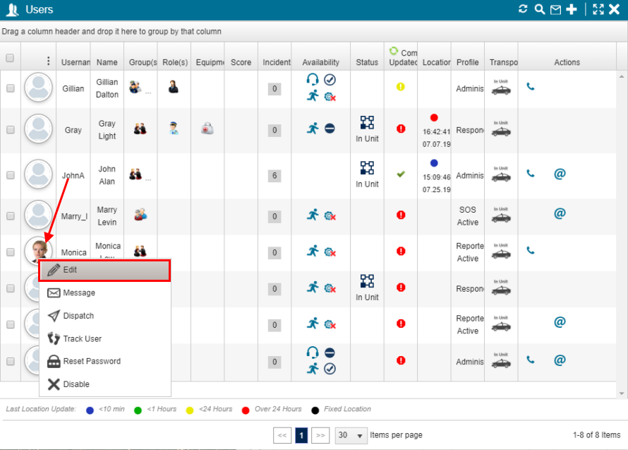 To disable a user from the user right-click menu on the Users panel