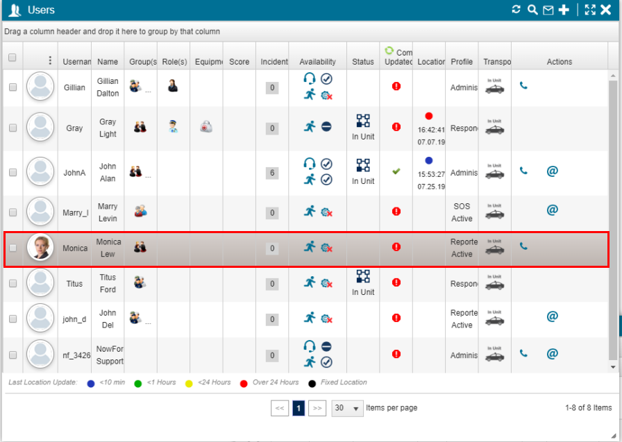 - Click Search. The Users panel shows the search results.