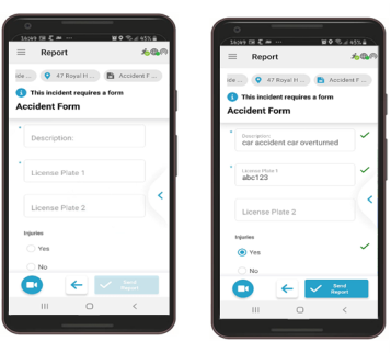 If the incident type selected has a form assigned to it, you can fill the incident form before reporting the incident to the dispatch operator.