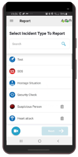 The Report screen appears with the list of Incident Types. Select the Incident Type from the list.